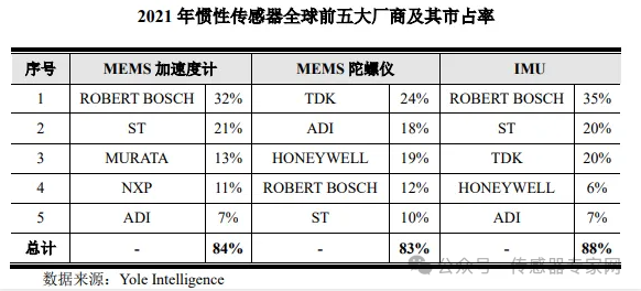 目前,市場上最成功的MEMS加速度計(jì)供應(yīng)商是博世、意法半導(dǎo)體、村田制作所、恩智浦和亞德諾等,其中,博世和意法半導(dǎo)體分別以32%和21%市場份額領(lǐng)先。