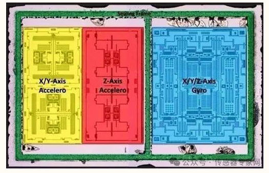 ▲InvenSense(TDK)的九軸慣性測量單元內(nèi)部:陀螺儀 (右)和加速度計(jì)(左)