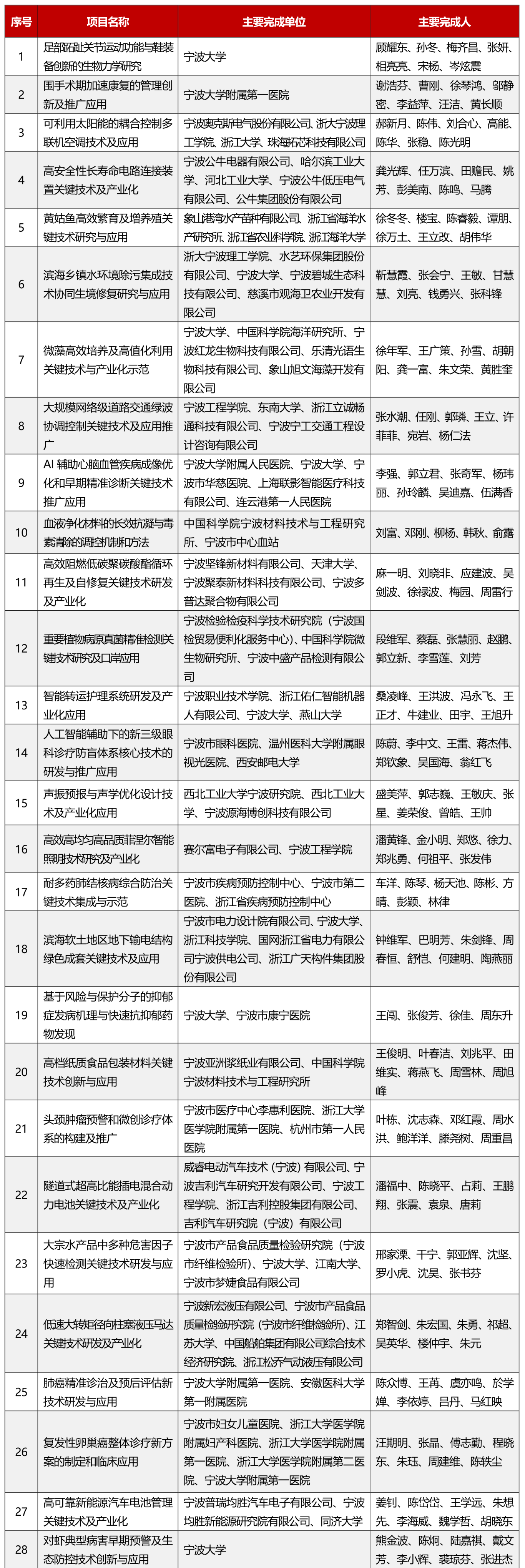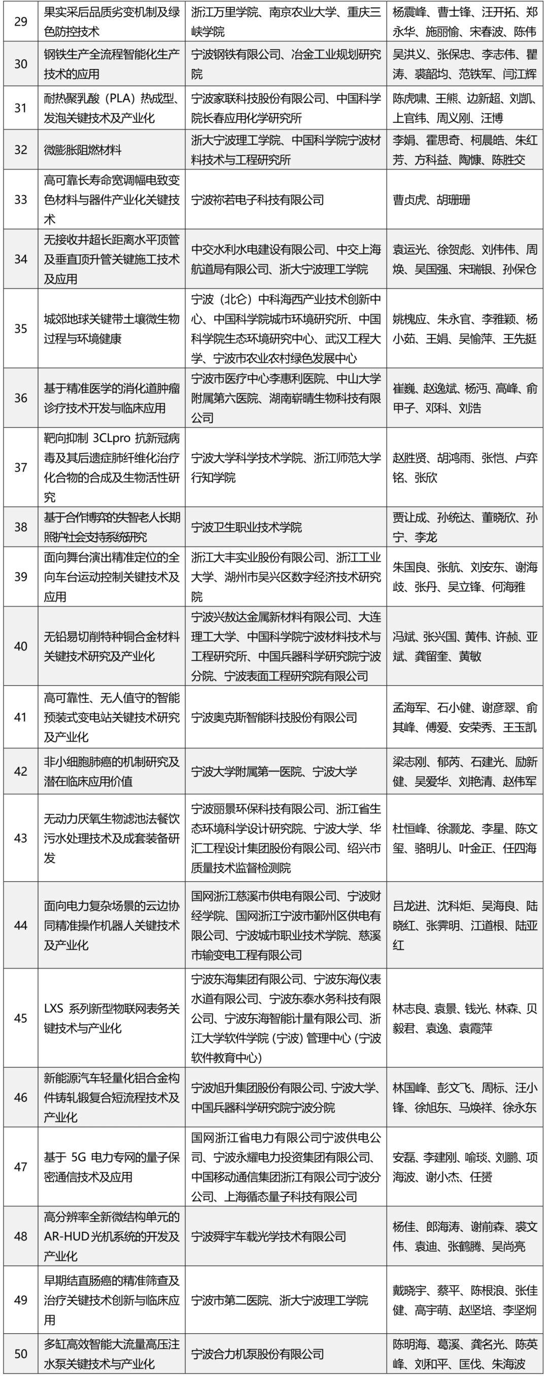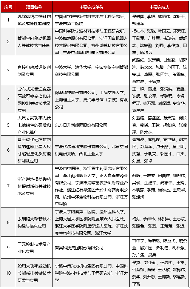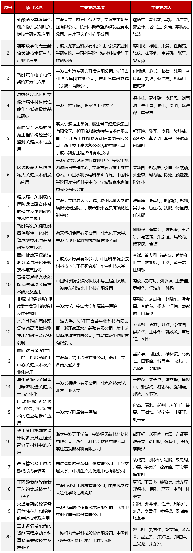 寧波市科學技術進步獎獲獎項目名單