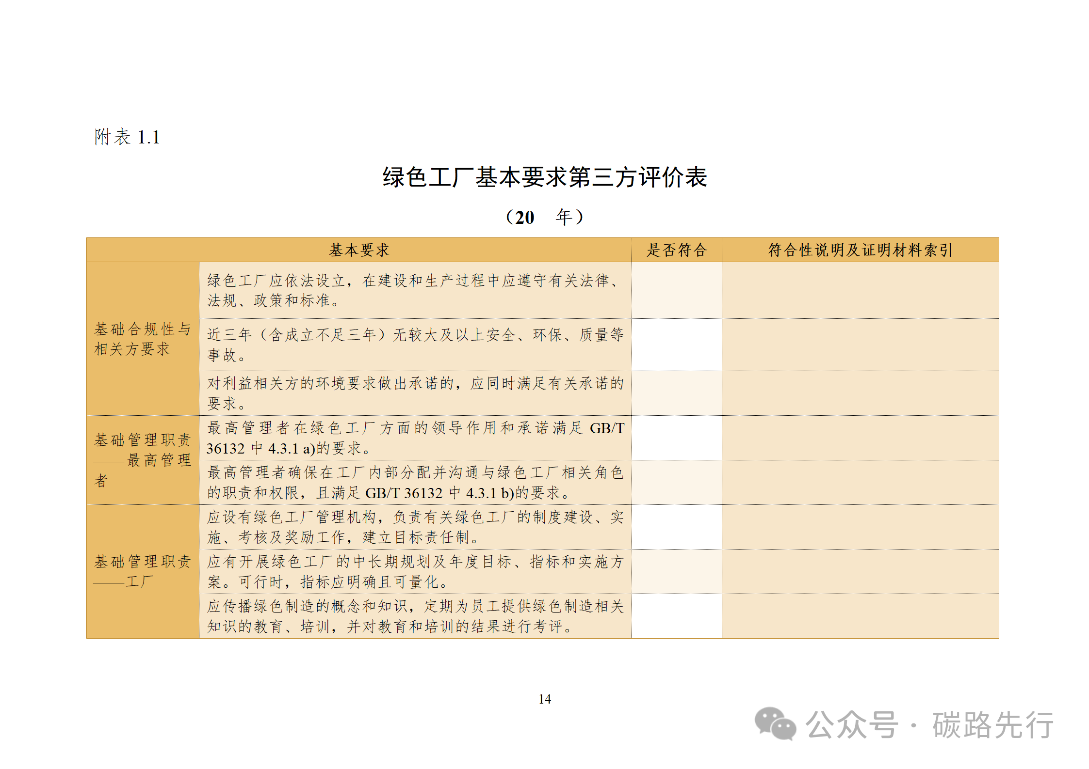 綠色工廠基本要求的符合情況;②6個一級指標;加分項:零碳工廠創建方面開展的工作情況。