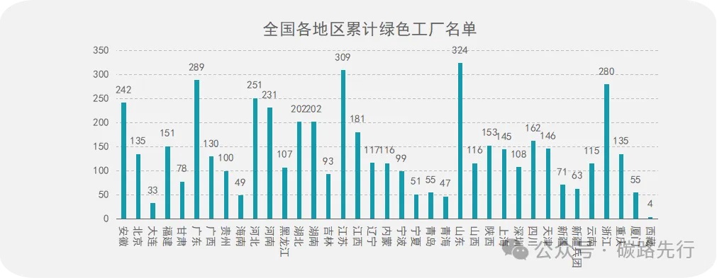 根據統計,全國綠色工廠累計申報最多的地區分別為山東省、江蘇省、廣東省和浙江省。