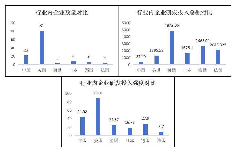 綜上,與主要國家相比,中國科技領軍企業數量較多、研發投入總額較高,具有體量優勢。但中國目前仍缺乏具有世界尖端水平的科技領軍企業,且整體創新強度不高,對科技創新的投入程度還有差距。此外,中國科技領軍企業在各個指標上的表現均不及美國企業,即便是引以為傲的體量優勢仍與美國企業存在著一定的差距。