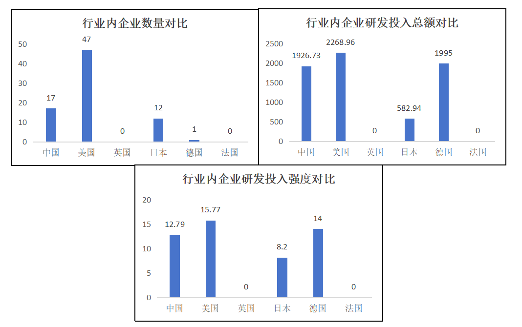 在研發投入最高值與最低值的比較上,中國科技領軍企業基本與主要國家持平,但與美國相比有差距十分明顯。