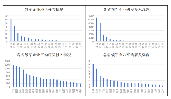 除港澳臺地區外,全國有21個省市有科技領軍企業進入全球1000強,10個省市缺乏全球科技領軍企業,包括:黑龍江、海南、貴州、云南、甘肅、青海、內蒙古、廣西、西藏、寧夏。