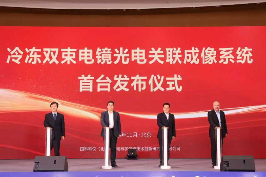 近日,中國科學院科技成果轉(zhuǎn)化“融合點”行動首場活動在京舉辦。會上,國科科儀控股企業(yè)國科科儀(北京)高端科學儀器技術(shù)創(chuàng)新研究院有限公司(簡稱國科儀器)與中國科學院生物物理研究所正式發(fā)布了國內(nèi)首臺冷凍雙束電鏡光電關(guān)聯(lián)成像系統(tǒng),北京市科委、中關(guān)村管委會黨組成員、副主任龔維冪,懷柔科學城黨工委委員、管委會副主任、懷柔區(qū)副區(qū)長蘭雄景,中國科學院生物物理所副所長柳振峰和國科科儀控股有限公司董事長李昕共同為該產(chǎn)品揭幕。