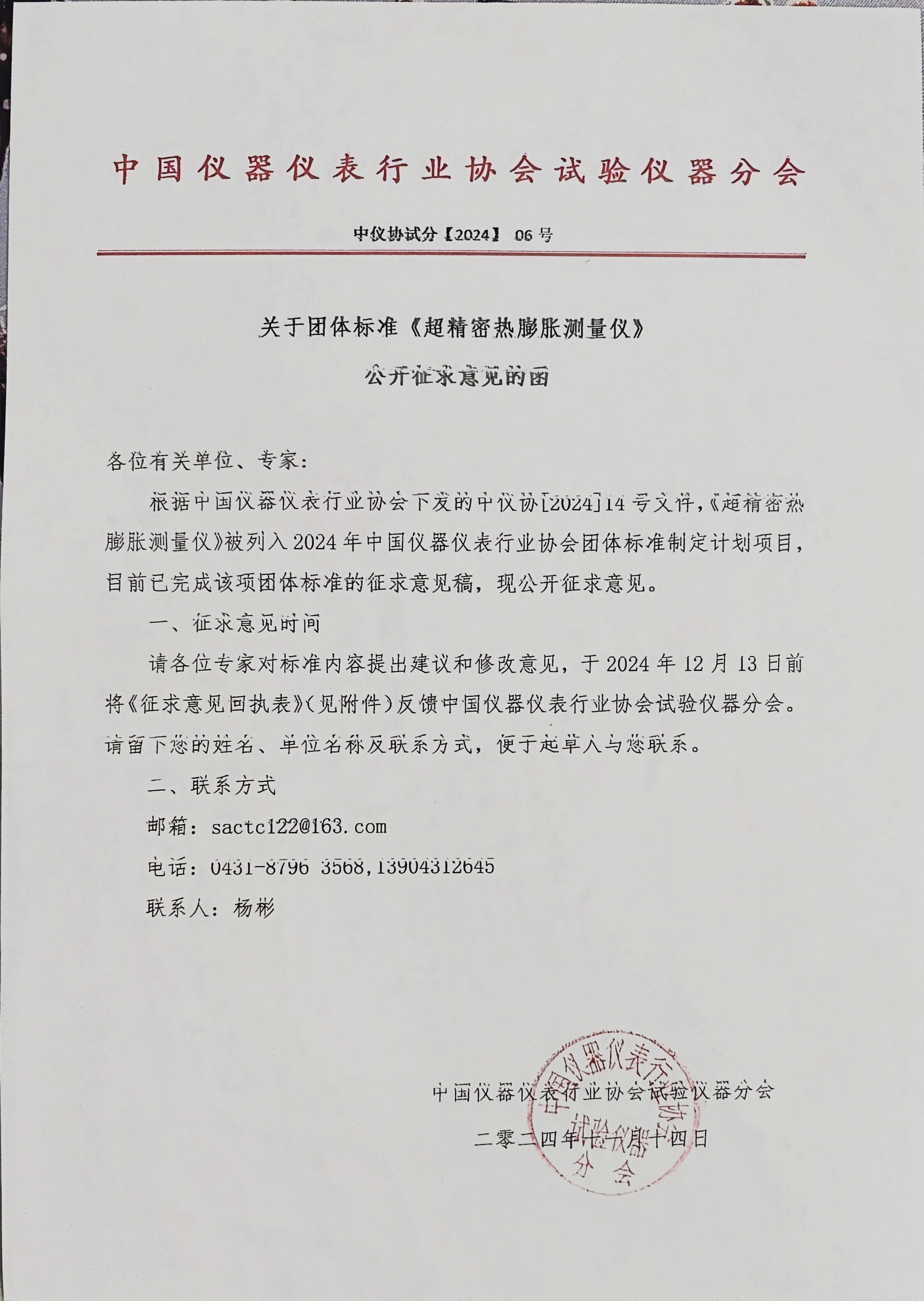 3、《超精密熱膨脹測量儀》團體標準征求意見回執表