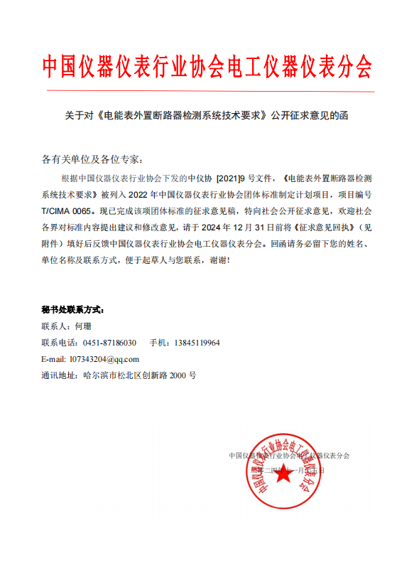 3. 《電能表外置斷路器檢測裝置技術要求》征求意見回執