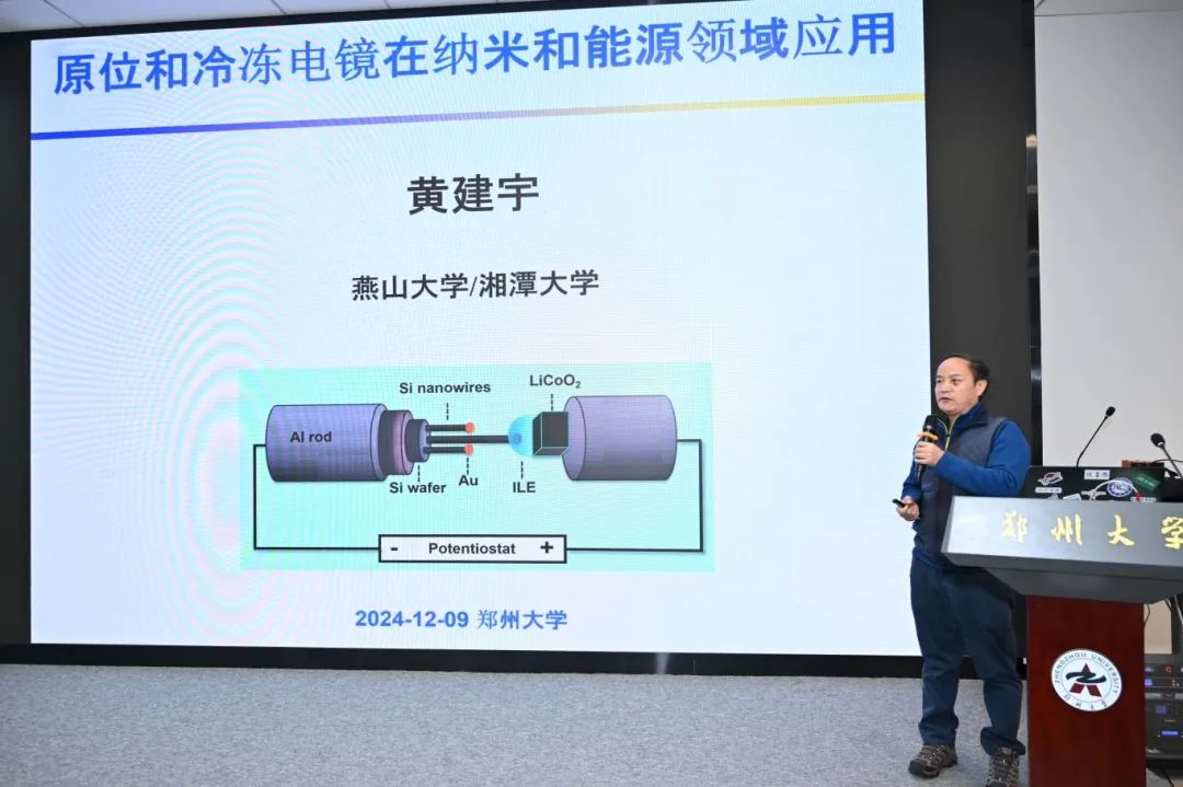 燕山大學(xué)黃建宇教授作了題為“原位和冷凍電鏡在納米和能源領(lǐng)域應(yīng)用”的報(bào)告;