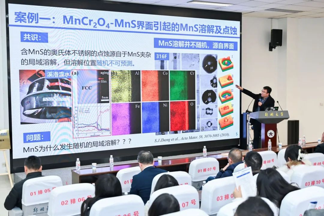 河北工業(yè)大學(xué)鄭士建教授分享了“近使役條件下工程合金微結(jié)構(gòu)與性能”的報(bào)告;