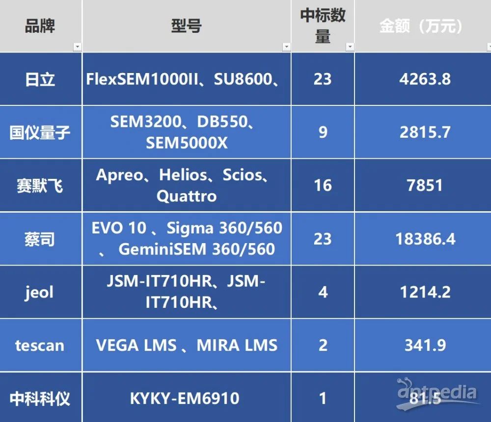 表1. 2024年度 掃描電子顯微鏡 中標廠商統(tǒng)計表