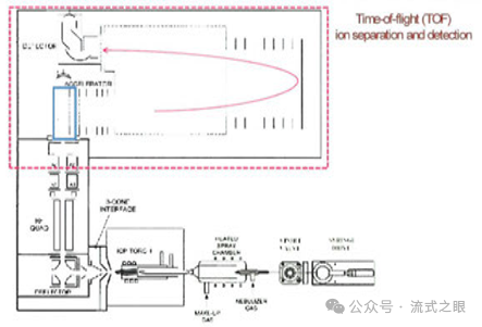 富集后的離子云被送到時間飛行質(zhì)譜儀(TOF-MS)中,根據(jù)離子的質(zhì)荷比(m/z)對離子進(jìn)行分離和檢測,不同質(zhì)荷比的離子在飛行時間上有所差異,TOF-MS 用于對經(jīng)過 ICP-MS 離子化后的金屬離子進(jìn)行精確測量,實現(xiàn)了對不同金屬標(biāo)記的生物分子的準(zhǔn)確識別和定量,過程如下(圖2-5):