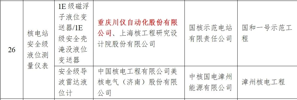 重慶川儀聯(lián)合上海核工程研究設(shè)計(jì)院開發(fā)的1E級(jí)磁浮子液位變送器和安全殼淹沒(méi)液位變送器,應(yīng)用于國(guó)和一號(hào)示范工程。