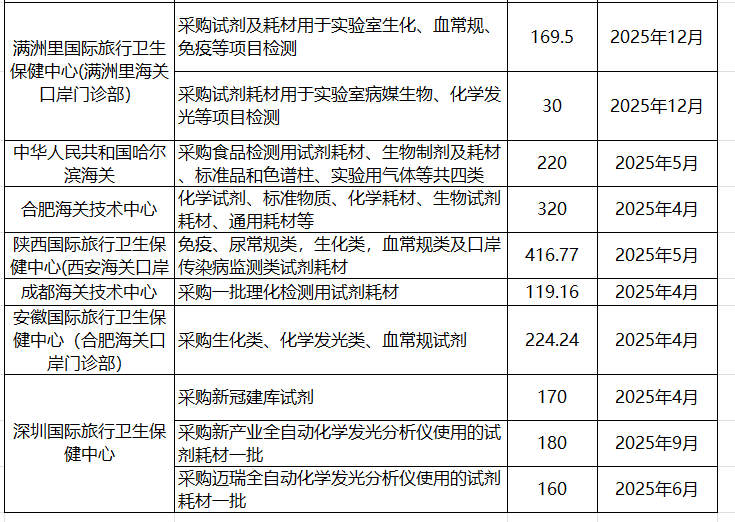 海關系統儀器設備及試劑耗材采購意向匯總