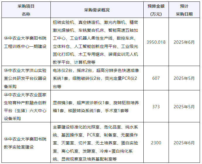 華中農(nóng)業(yè)大學(xué)儀器采購(gòu)意向匯總