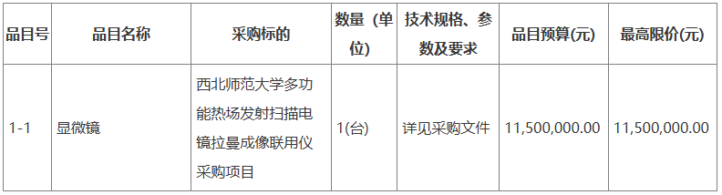 項目名稱:多功能熱場發射掃描電鏡拉曼成像聯用儀采購項目