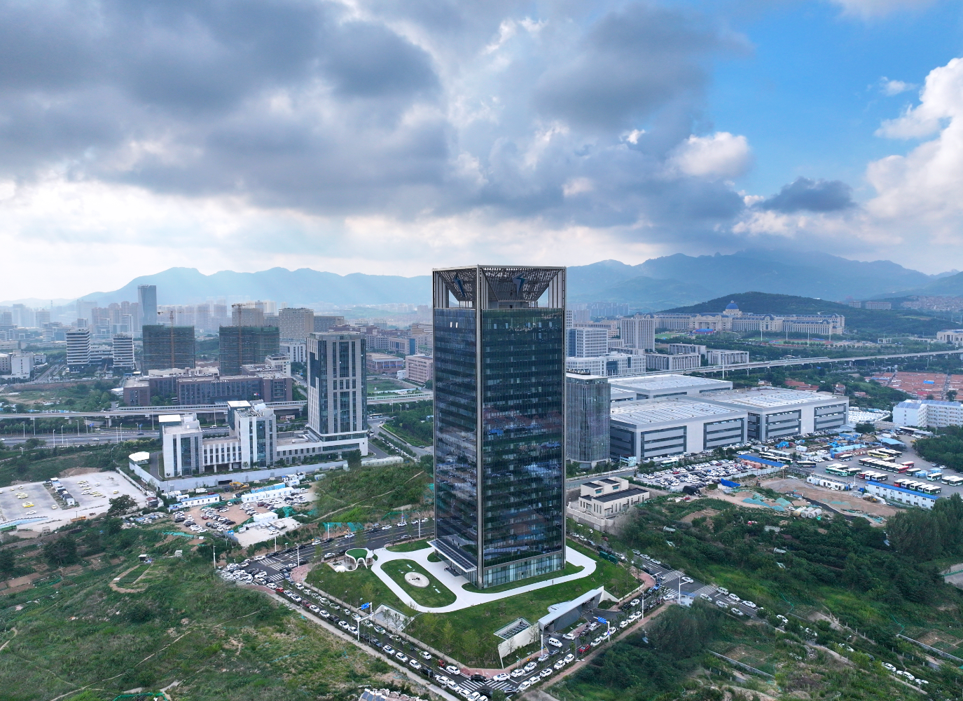 特來(lái)電總部基地大樓位于山東省青島市嶗山區(qū),建筑面積約4.3萬(wàn)平方米,總高度117米,共有23層辦公區(qū),日均用電量約6000度。該棟建筑東、西、南三個(gè)外立面均安裝建筑一體化光伏玻璃幕墻,可將吸收的太陽(yáng)能轉(zhuǎn)化為源源不斷的電能,日發(fā)電量達(dá)1500度,可實(shí)現(xiàn)全樓最高25%的綠能替代。