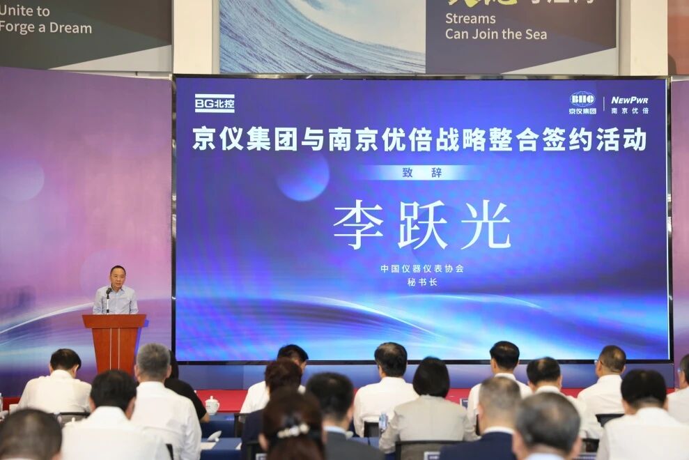 在北控集團、江寧區及江寧開發區有關領導,中國儀表儀表學會、協會,儀綜所,清華大學精密儀器系,上海自動化院,南陽防爆所,中國石油和化工自控專委會,國標委TC124\SC2等行業專家,康吉森、科遠智慧、菲尼克斯和天康集團等國內儀器儀表行業重點企業負責人共同見證下,京儀集團與南京優倍完成戰略整合簽約。