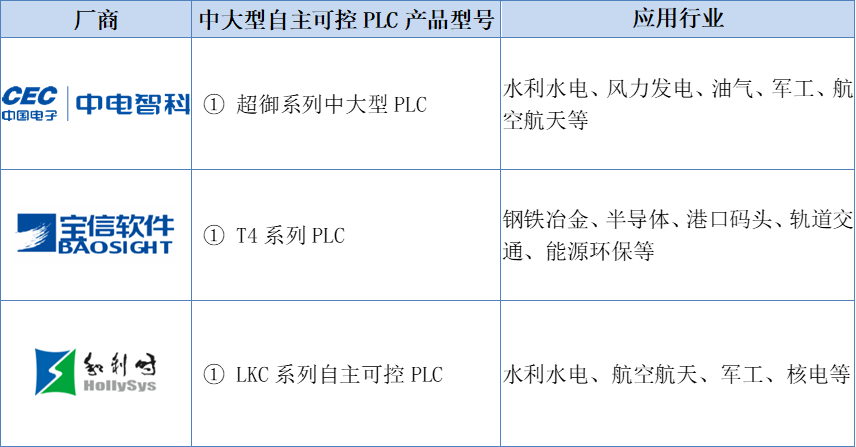 部分國產(chǎn)廠商中大型自主可控PLC產(chǎn)品
