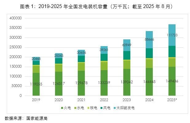 “十四五”火電裝機(jī)規(guī)模穩(wěn)步提升。2019年全國(guó)發(fā)電裝機(jī)容量20.1億千瓦,到2025年8月已超過36億千瓦,其中增量最大的是太陽能發(fā)電接近10億千瓦。而火電裝機(jī)也保持了穩(wěn)步提升,從2019年的11.9億千瓦,增加到2025年8月的14.9億千瓦。
