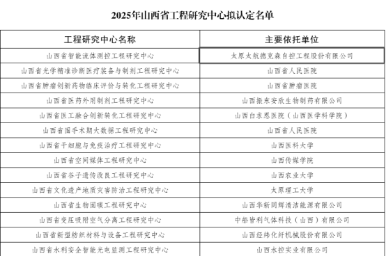 近日,山西省發展和改革委員會正式發布《關于認定2025年山西省工程研究中心的通知》(晉發改高新發〔2025303號)文件,由太航德克森申報的“山西省智能流體測控工程研究中心”憑借雄厚的技術實力、清晰的研發路徑與卓越的產業價值,成功入選,榮獲官方認定!