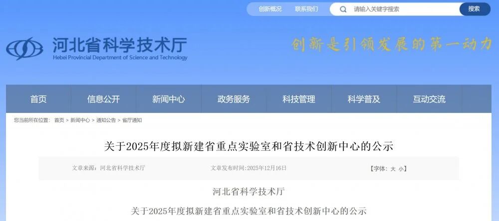此次擬新建名單的確定,是依據《河北省重點實驗室建設與運行管理辦法》(冀科平規〔20233 號)和《河北省技術創新中心建設與運行管理辦法》(冀科平規〔20232 號)相關規定,經過嚴格篩選與評審等流程得出的結果。公示期為5個工作日,從20251216日持續至20251222日。