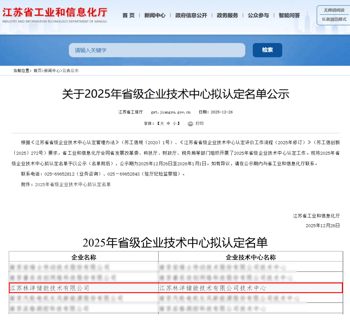 這是繼獲批“鋰電池儲能系統(tǒng)江蘇省產(chǎn)業(yè)技術(shù)工程化中心”后,公司在省級科技創(chuàng)新平臺建設(shè)上實現(xiàn)的又一重要突破,標(biāo)志著林洋儲能在技術(shù)研發(fā)體系構(gòu)建與產(chǎn)業(yè)化能力方面,再次獲得省級工信系統(tǒng)的權(quán)威認(rèn)可。