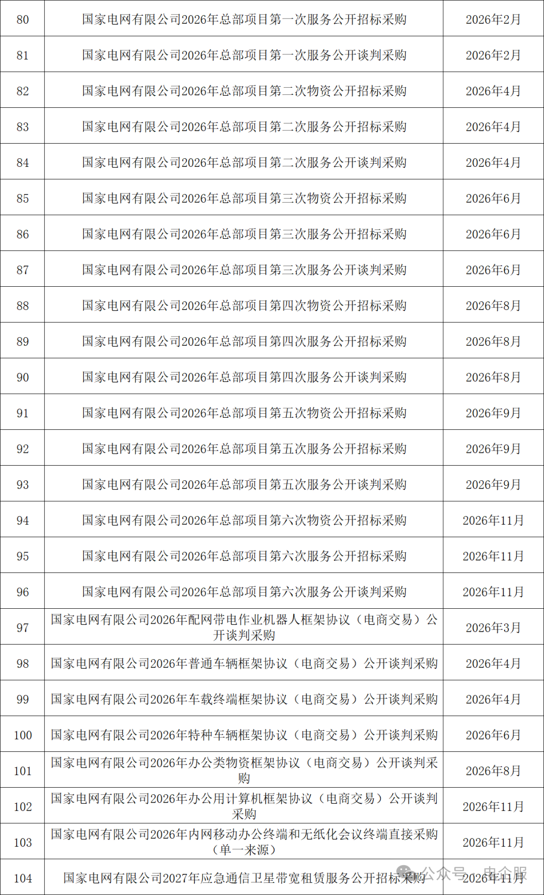 國家電網有限公司2026年度總部集中采購批次預安排