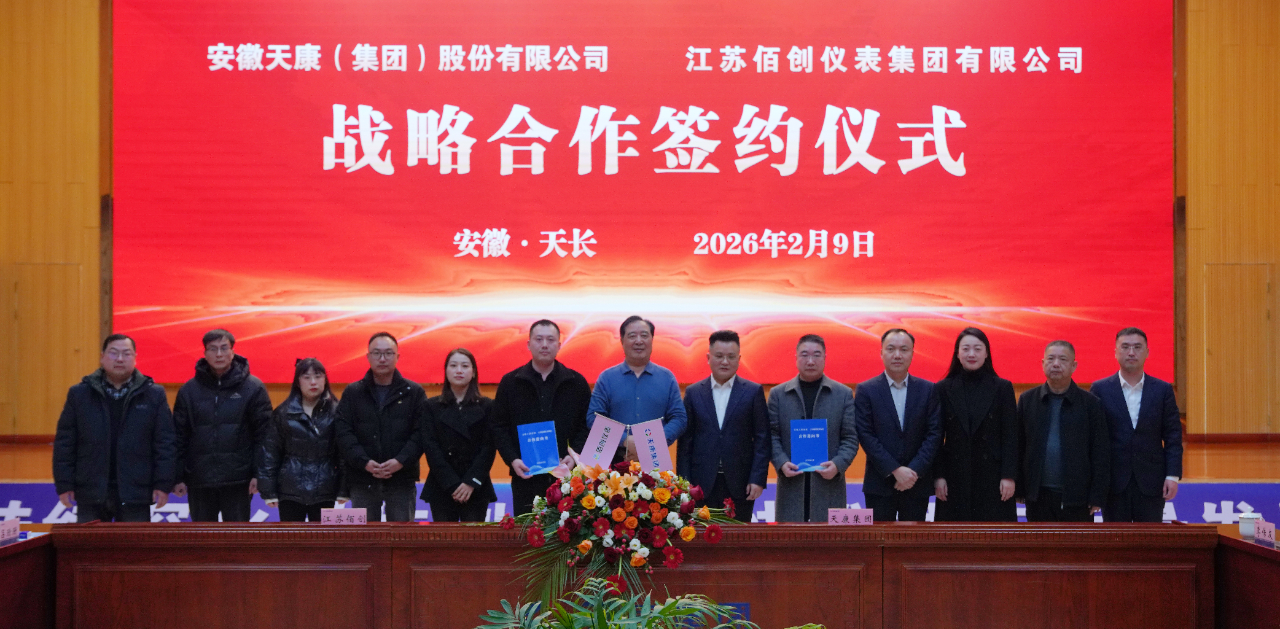 2月9日下午,安徽天康集團(tuán)與江蘇佰創(chuàng)儀表集團(tuán)戰(zhàn)略合作簽約儀式在安徽天康集團(tuán)隆重舉行。安徽天康集團(tuán)黨委書記、董事長趙寬,黨委副書記、總經(jīng)理毛文章,副總經(jīng)理王舉,紀(jì)委書記、辦公室主任馬林,國家企業(yè)技術(shù)中心常務(wù)副主任華啟國,江蘇佰創(chuàng)儀表集團(tuán)董事長兼總經(jīng)理李名浩、監(jiān)事姜偉瑩等雙方主要領(lǐng)導(dǎo)及相關(guān)負(fù)責(zé)人共同出席簽約儀式。儀式由安徽天康集團(tuán)副總經(jīng)理王舉主持。