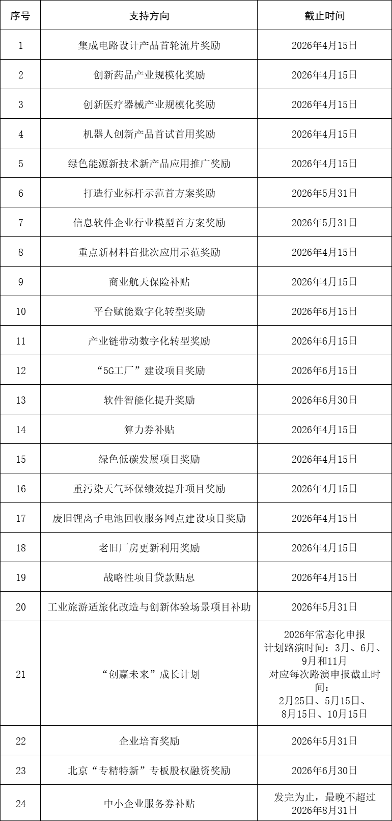 2.符合方向1-21、方向23條件的申報單位可在202634日至申報截止時間內登錄北京市人民政府門戶網站“政策兌現”頻道(https://zhengce.beijing.gov.cn),選擇相對應的項目,按照指引填報相關企業信息及對應材料。