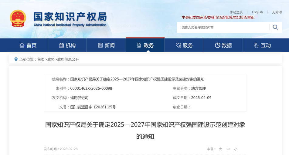 近日,國家知識產權局發布《國家知識產權局關于確定2025—2027年國家知識產權強國建設示范創建對象的通知》,威勝集團有限公司入選《國家知識產權示范企業創建對象名單》。