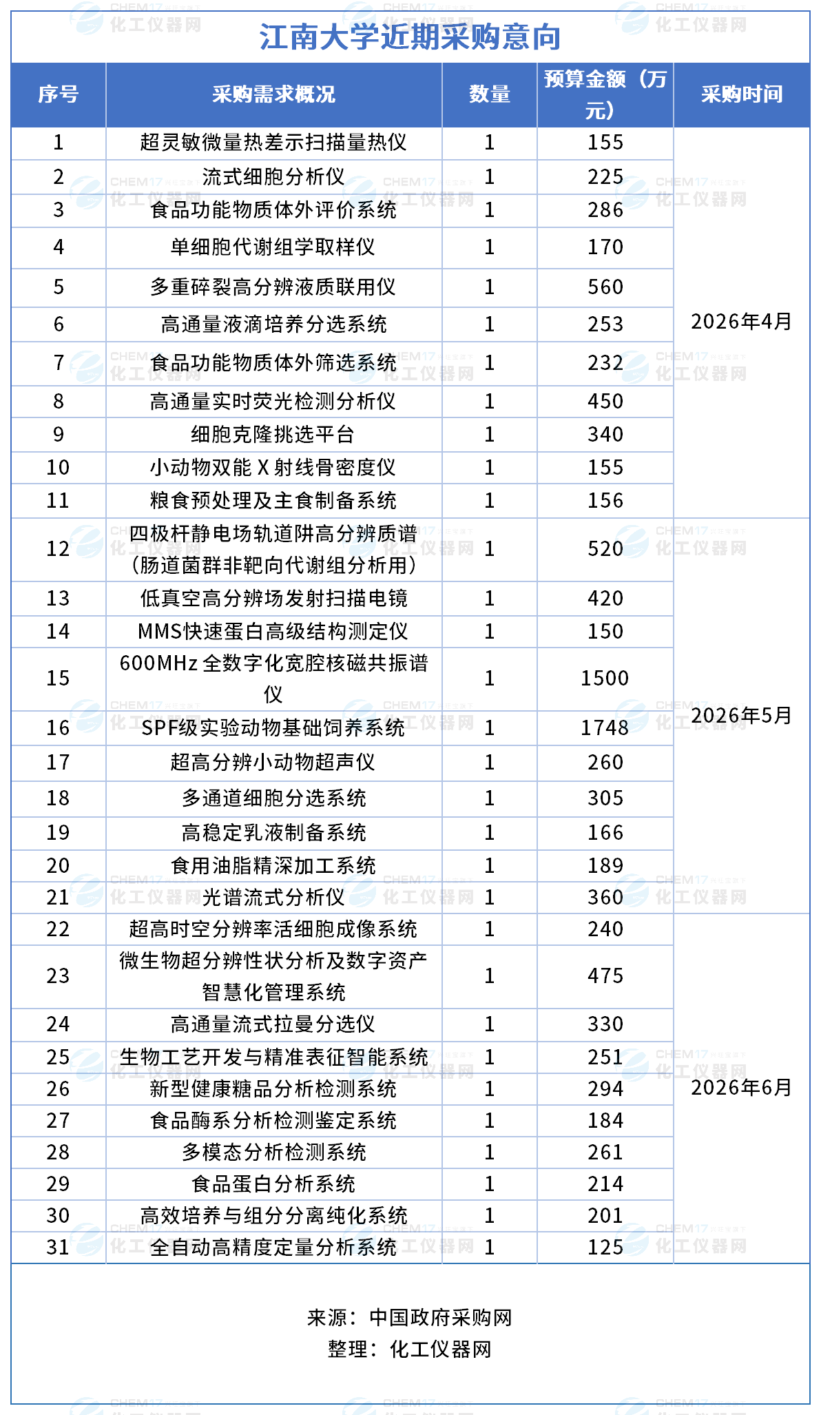 預算超1.1億!江南大學發布近期儀器采購意向