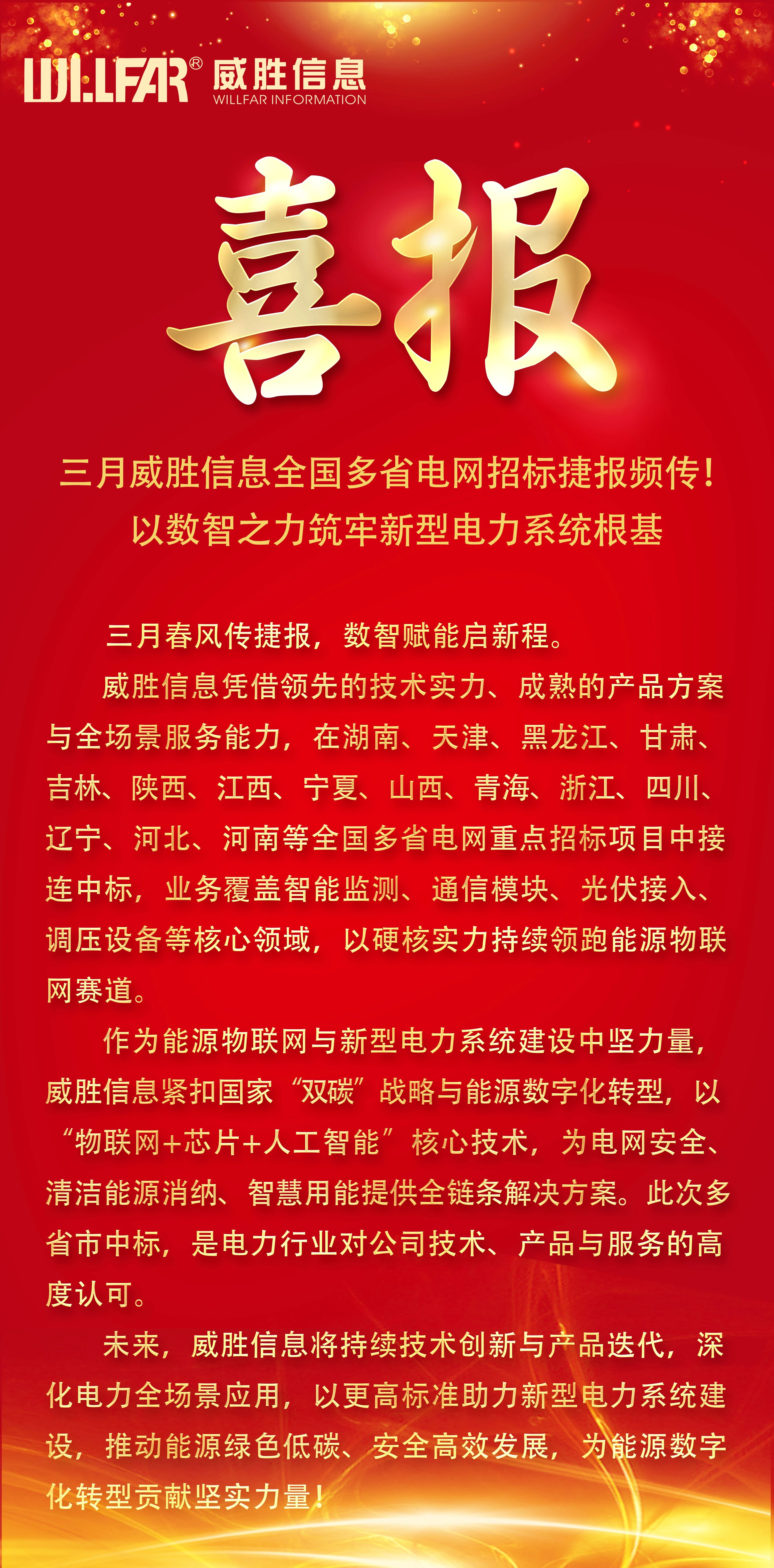 三月威勝信息全國多省電網招標捷報頻傳!以數智之力筑